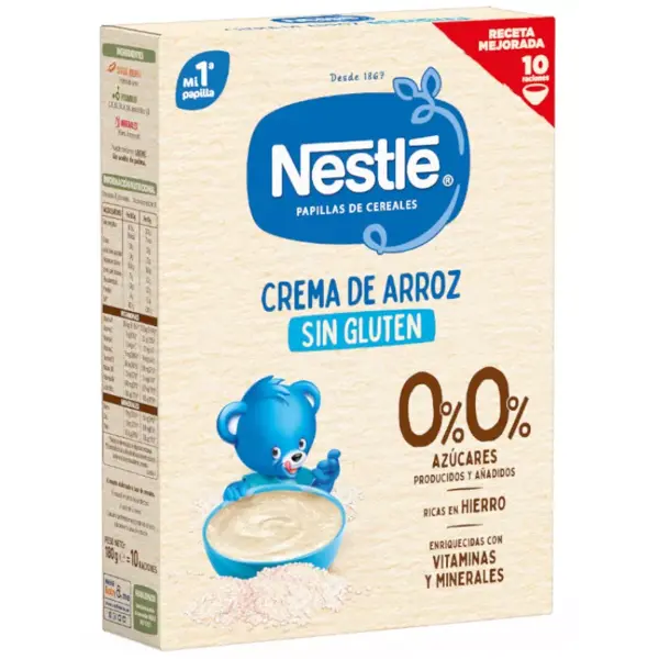 La Papilla Nestlé Crema de Arroz Sin Gluten 180 g es ideal para introducir los primeros cereales en la dieta del bebé. Su fórmula suave, sin gluten, es perfecta para estómagos sensibles y está enriquecida con hierro, zinc y vitaminas.